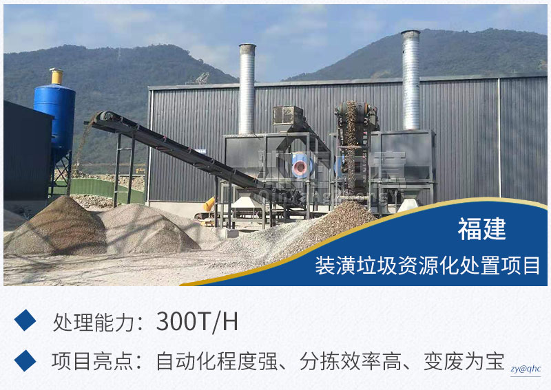 该项目位于福建福州建筑装修垃圾分拣站,辐射周边拆迁、修路、改造等项目产生的建筑废弃物。并且上下游原料、销售渠道已经打通。采用全套中意矿机设计建筑垃圾破碎再利用加筛分生产线,将原本混在一起的混合装修垃圾,“乖乖”地按金属、塑胶、玻璃、渣土等类别被迅速区分开来。实现垃圾的减量化资源再利用。