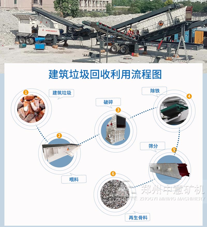 随着城市的扩建和改造,建筑垃圾的产生是许多生产和管理者不得不面对的问题,令人棘手而头疼,这也是影响城市文明建设的重要环节,怎样处理建筑垃圾?是否有变废为宝的新设备及新工艺? 移动混凝土破碎设备的出现,有效地解决了建筑垃圾处理问题,打破了传统的破碎时繁琐的钢架结构,地基的建设;整套设备可直接开进现场,将建筑垃圾就地消化,同时促进了再生砖、再生混凝土、干混砂浆等多种再生制品企业的发展。目前,中意矿机移动混凝土破碎设备已在河南、河北、浙江、江苏、山东、陕西、福建、江西、湖北、贵州、广东、云南等国内数百个建筑垃圾再生项目中投产,如您想到现场参观,可拨打咨询热线。